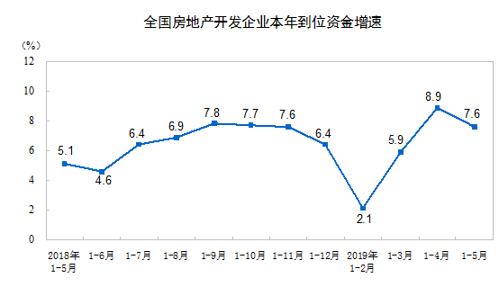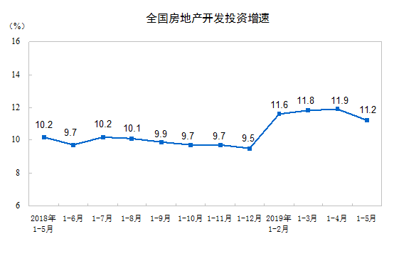 2019年1—5月份,全國(guó)房地產(chǎn)開發(fā)投資46075億元,同比增長(zhǎng)11.2%,增速比1—4月份回落0.7個(gè)百分點(diǎn)。其中,住宅投資33780億元,增長(zhǎng)16.3%,增速回落0.5個(gè)百分點(diǎn)。住宅投資占房地產(chǎn)開發(fā)投資的比重為73.3%。