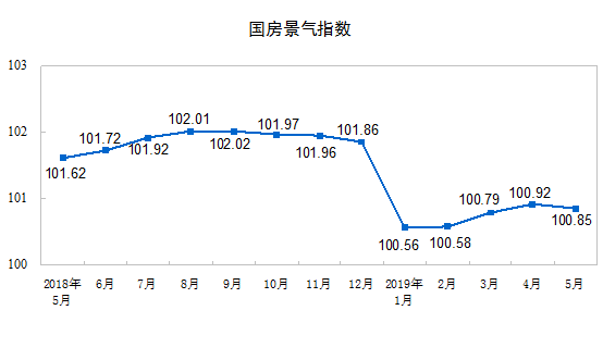 5月份,房地產(chǎn)開發(fā)景氣指數(shù)(簡(jiǎn)稱“國(guó)房景氣指數(shù)”)為100.85,比4月份回落0.07點(diǎn)。